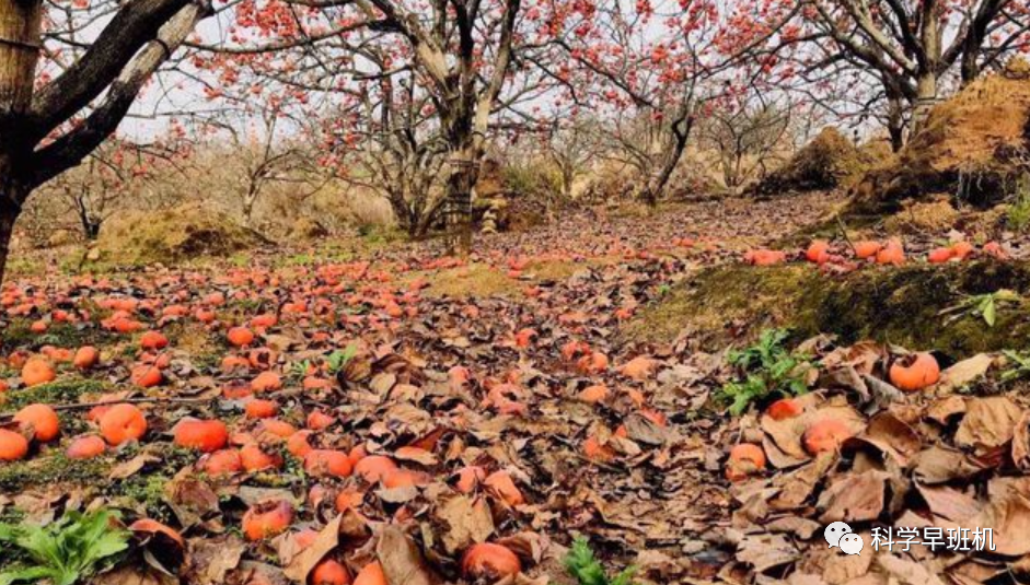 柿子在这个过程中很容易受到挤压,腐烂在路上,较高的投入产出比让农户们不愿意做这个亏本买卖。与其花大力气运出去在路途中就坏掉,不如就让自家“吃独食”,而吃不完的柿子就让它们在树林里“自生自灭”吧。