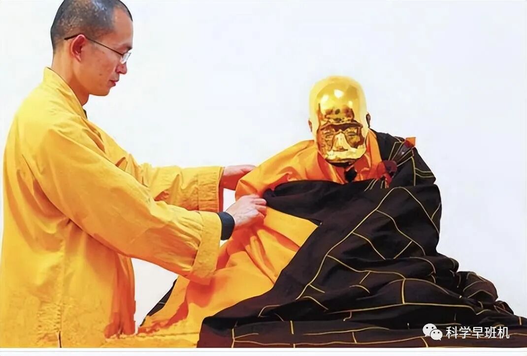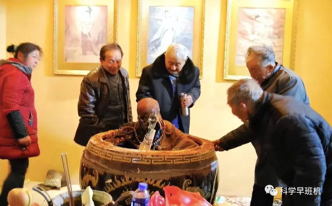 等这些高僧寿终正寝之后,弟子会将其尸身放入特制的陶罐之中。高僧安详地躺密封的陶罐之内。而陶罐之外,一边是弟子们喃喃自语地诵经,一边是燃烧着着熊熊大火,据说这把火从点燃开始,就要连续烧上七天七夜。