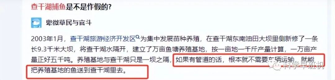 自称是查干湖本地人的网友煞有其事地“揭露”了查干湖高产量的奥妙在于搬运产于池塘中的“洗澡鱼”。