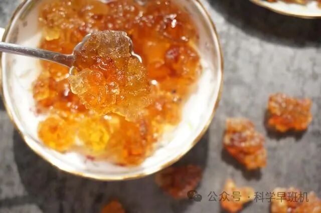 桃胶的主要成分是多糖,小小的一颗桃胶就含有极为丰富的胶原蛋白、维生素,促使桃树的伤口迅速痊愈。