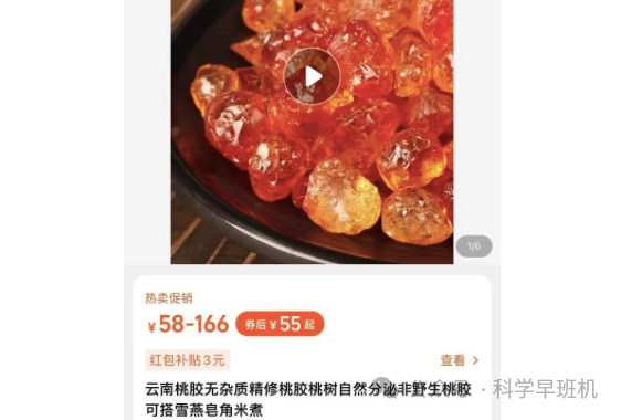 这主要是因为城市消费者作为消费主力军,拥有更为现代化的美容、养生意识。桃胶商家投其所好,大肆宣传桃胶的高营养、零添加、低脂肪,并且在包装与销售方面都下足了功夫,让桃胶一跃成为名副其实的“植物燕窝”。