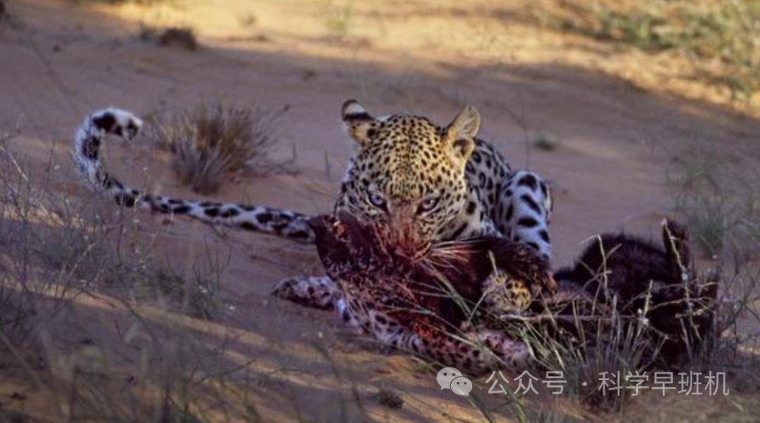 花豹往往会采取“出其不意”的策略偷袭蜜獾,并矫健地躲避它的反击,用锋利的爪子袭击蜜獾的要害部位,能够在短时间内咬断其喉管,再将蜜獾拖到一个隐蔽之处慢慢享用。