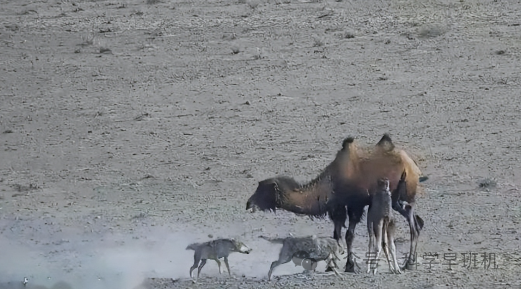 沙漠中的骆驼很少有因为别的动物猎食而死的,更多是因为体内储存的水量太少渴死,太久没吃东西饿死,或者因为染病身亡。但其实也有一种动物可以对骆驼产生威胁,就是生活在沙漠周边的狼群。