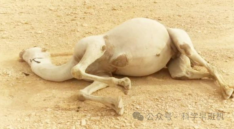 骆驼的体型虽然远远不及大象,在物种贫瘠的沙漠里也算是庞然大物了。骆驼的种类可以分成单峰驼和双峰驼,最重的双峰驼也能达到1300斤以上,加上它们的驼峰含有巨量的油脂,应该也是食肉动物的佳选“菜肴”。