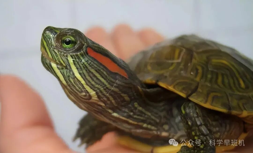 巴西龟并非土生土长的中国龟,而是一种非常强势的入侵物种。在外表上,巴西龟具有与众不同的特质,呈长椭圆形,脊棱明显,后缘带有锯齿状物。巴西龟颈部长有长条形红色斑块,在一众灰扑扑的乌龟品种中显得格外鲜艳,因此人们也称其为“红耳彩龟”。