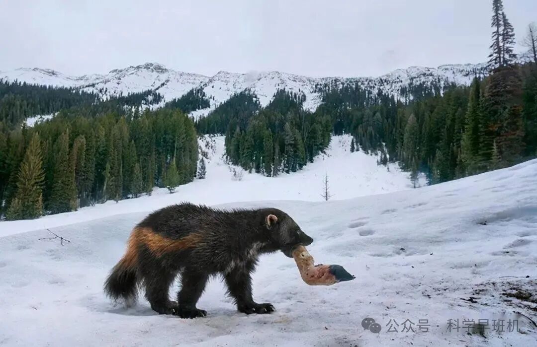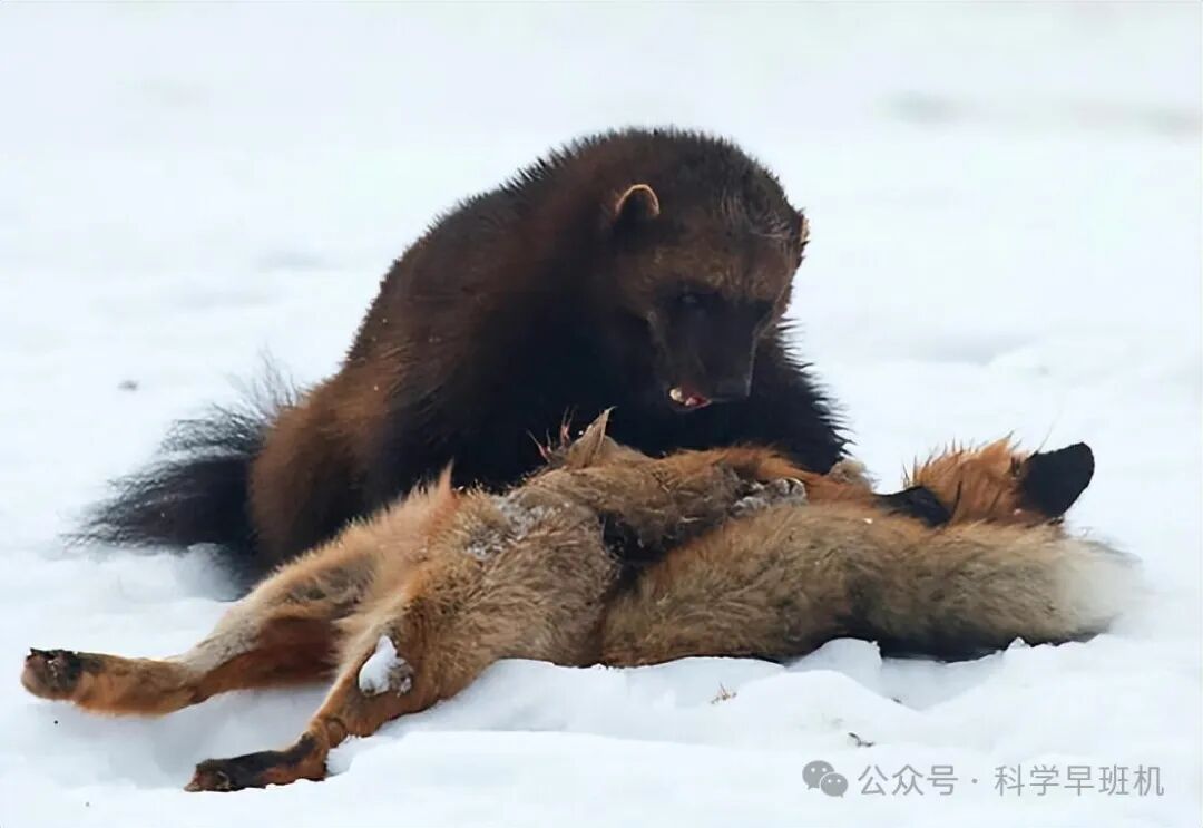 若是这招骚扰和偷袭都不奏效,貂熊还有一个绝招——捡漏。如果它跟踪的对象猎杀了体型较大的动物,大概率是吃不完的。这时貂熊就会暗中观察,等跟踪对象离开以后上去撕咬猎物尸体,并且搬运到自己的根据地。