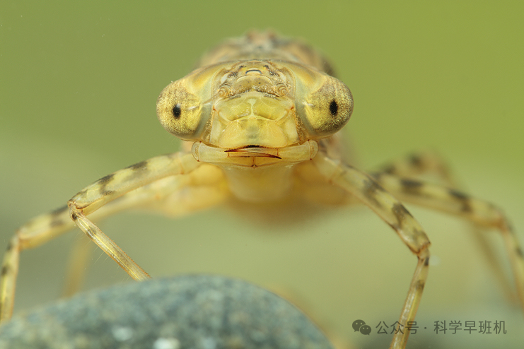 仔细看我们就能发现,水虿其实已经颇具蜻蜓的雏形,它们的脸上也像戴了一个巨大的面具,而且体形也与蜻蜓相似,但还没有长出翅膀。