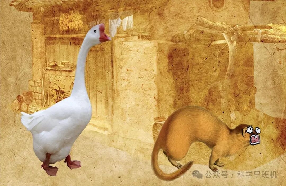 要说黄鼠狼和鹅可真是一对冤家,两个物种一遇见,可谓是“仇人见面,分外眼红”。早些年的时候,黄鼠狼喜欢流窜到农户家中偷粮。那时候的粮食非常珍贵,不仅要对外售卖,赚取家计;还要留余粮供全家温饱。