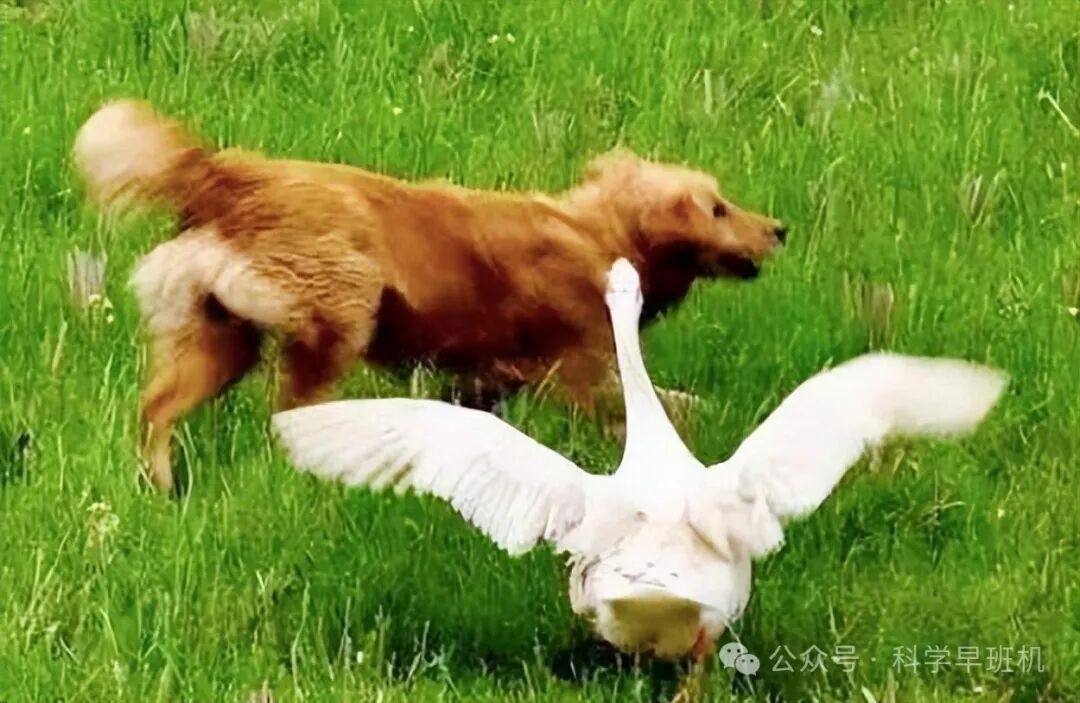 真是令人想不到,呆头呆脑的大鹅居然如此好斗。大鹅和家狗都被人类驯化为看家护院的家禽,但相较于“睚眦必报”的大鹅,家狗就显得低眉顺眼多了。不仅忠诚,吃喝不挑,还格外会看眼色,讨主人欢心。
