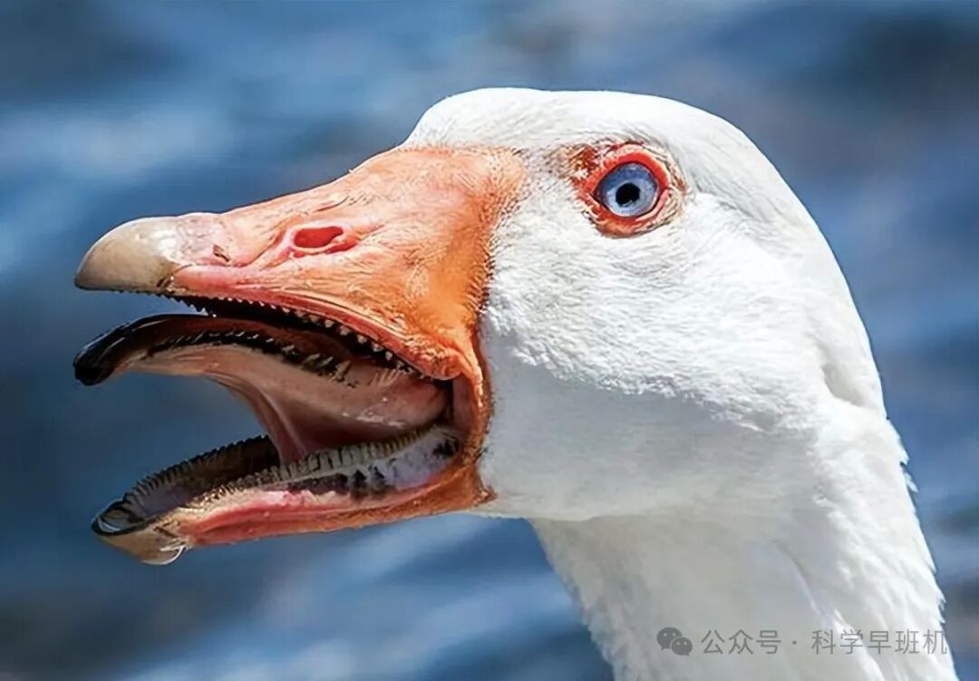 虽然,大白鹅没有毒腺,可是人家的牙齿结构十分“瘆人”,一根一根原本就锋利的牙齿紧密排列,犹如小型锯齿一般横亘于牙口之中。即使黄鼠狼的皮毛再厚,也经不住大白鹅死咬不放。