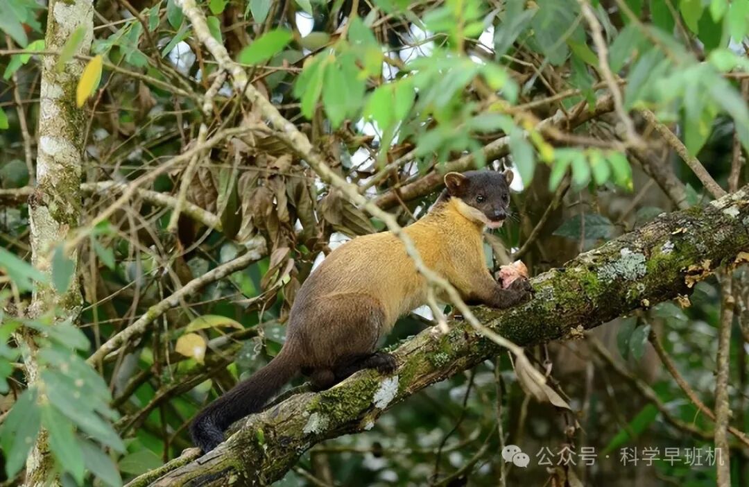 值得一提的是,黄喉貂的捕猎技术自成一派。它们通常会静静埋伏在树上,用犀利的视觉和听力,探取猎物的情况。通过游走、听响、止步、扑杀等方式令猎物束手就擒。