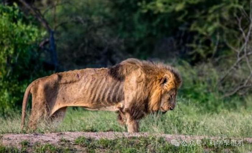 狮子在战役中受伤甚至死亡的案例不计其数。而且随着年龄的增长,狮子的体力和耐力都在逐渐下降,到最后再也无法与年轻雄壮的猎物展开博弈了,最终的结局就是被饿死。通常我们看到年迈的狮子,大多是骨瘦如柴的,最后连行走的力气都没有了。
