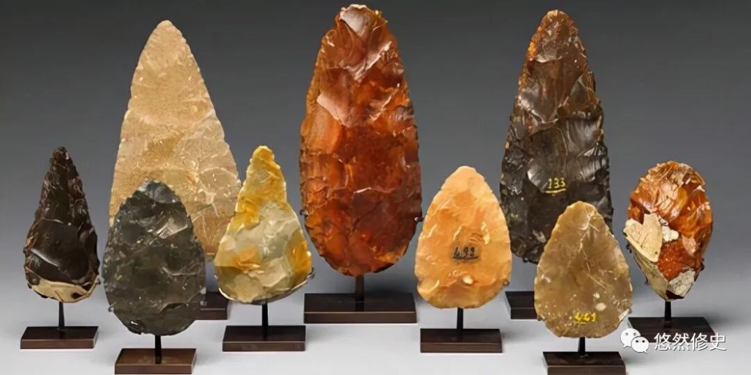 人类在远古时期受自然条件以及自身能力、认知的影响,工具还是以石器居多。主要就是各类通过敲击制作的石英、燧石等材质的石器。