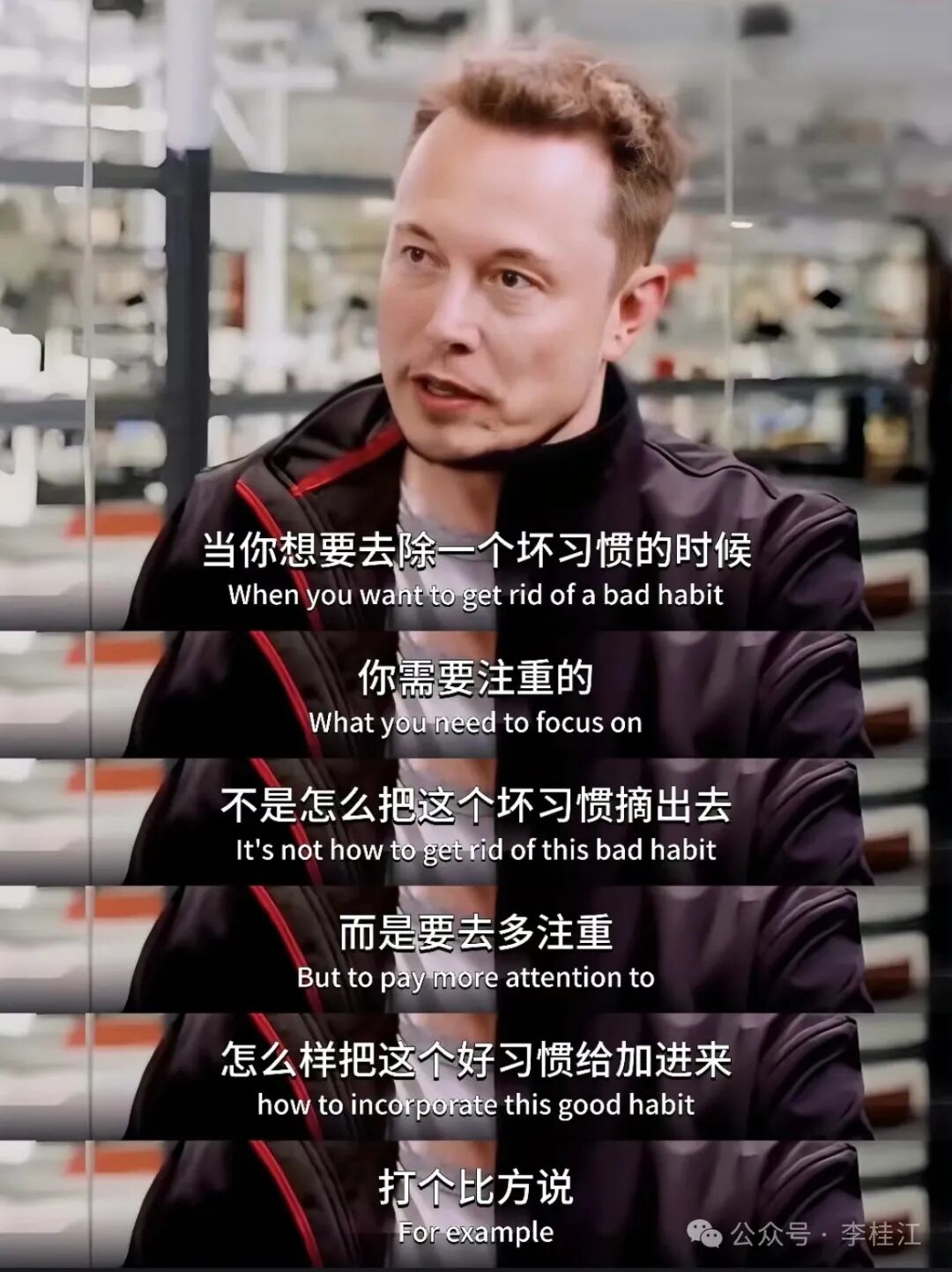 应该怎么改掉坏习惯,我们来看看马斯克是怎么说的: