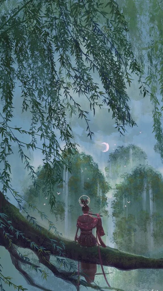 是的,就在那月光笼罩,小松丛生的松岗,她一直思念着他,为他褪去青丝、容颜成媪,为他泪洒斑竹,肠断湘箫。