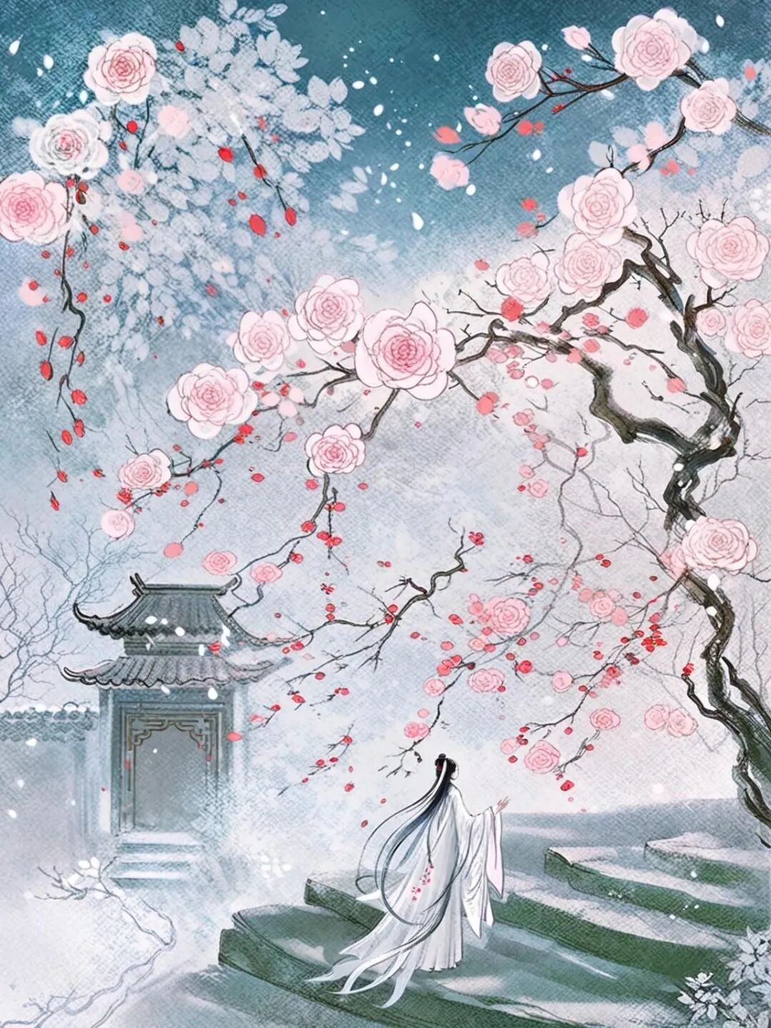 她之容颜,她之温柔,足以掩盖世间所有的污浊,独余一份圣洁。宛如雪花飘落,好似莲花绽放,在那窗前霜岭, 在那雪山之巅。