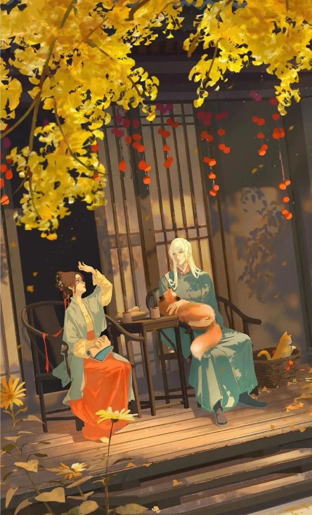 月光洒落,夜深人静,他们于庭中阁楼重逢,紧紧相拥,纵有千言万语,也无语凝噎。