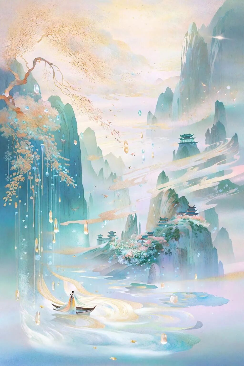一个夏天,梅雨刚过,蝉鸣阵阵,窗外小榭处,廊下池塘被微风带起涟漪,鱼儿在水下嬉戏,惹得那新荷摇动。周邦彦闲来无事,便支起薄薄沙帐,轻摇羽扇,躺在竹席上纳凉。