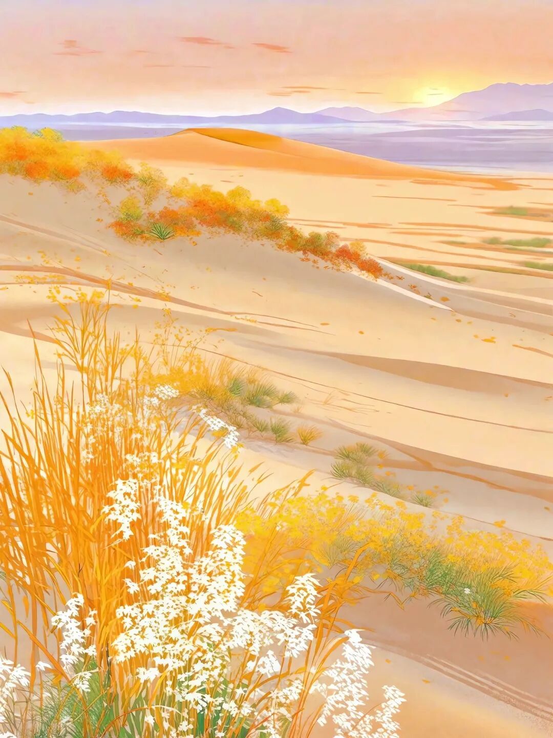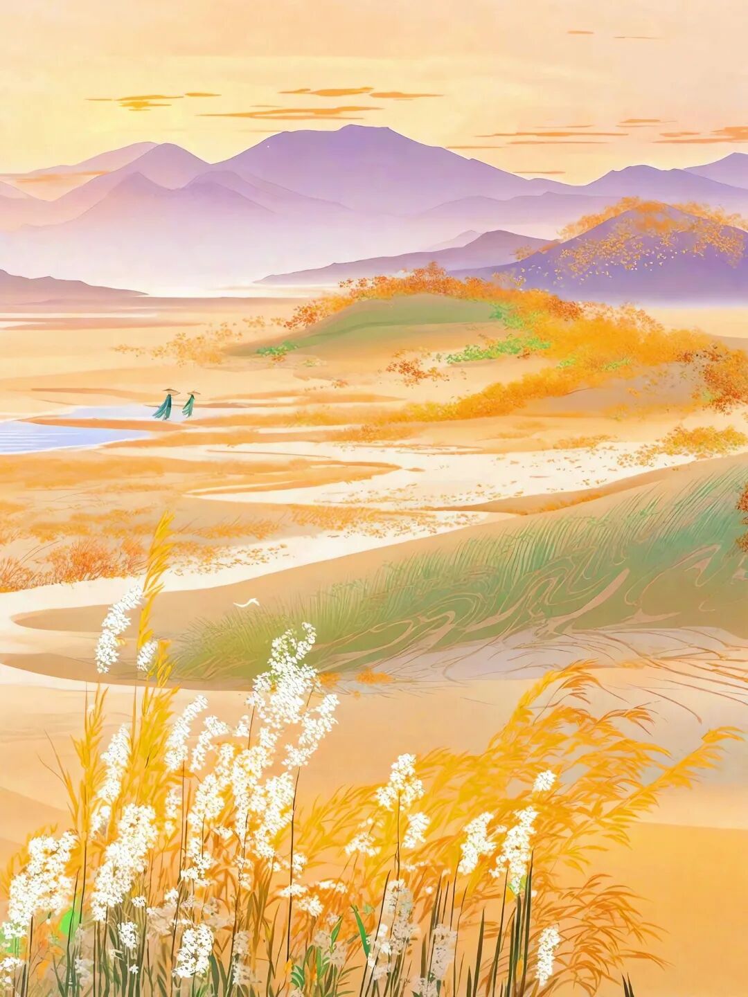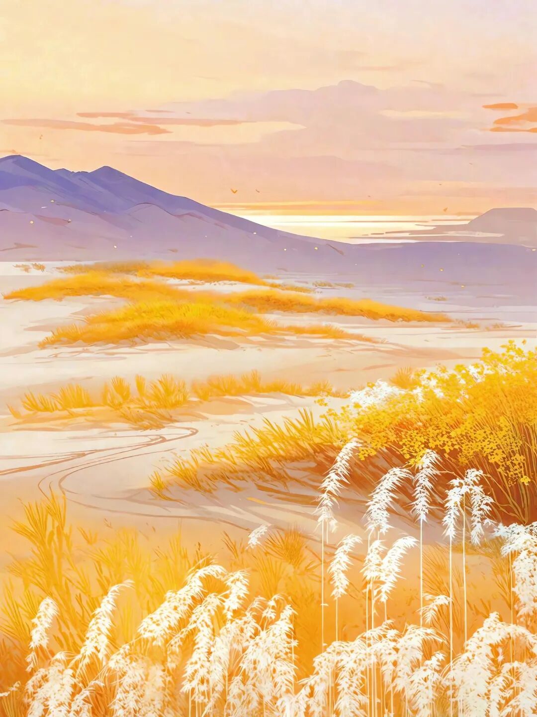 晶莹的露珠坠在草叶间,星星点点,如梦似幻。微黄的蒹葭在风的吹拂下,摇曳生姿,顾盼流连。湖中水波连连,褶皱一季的相思。