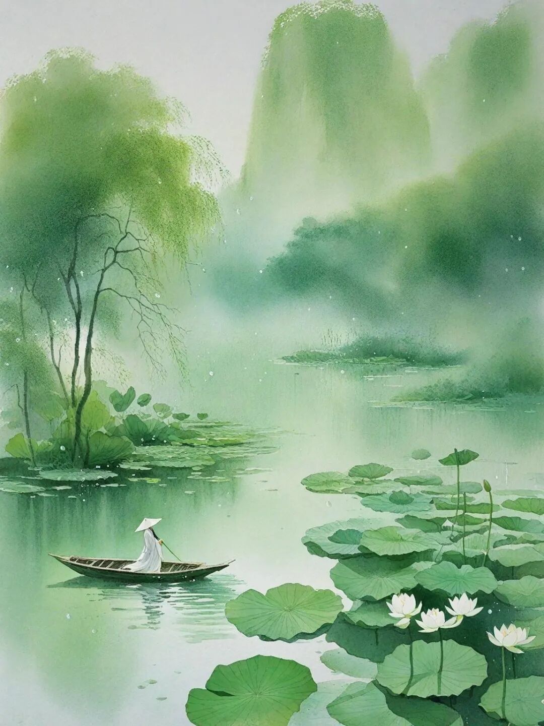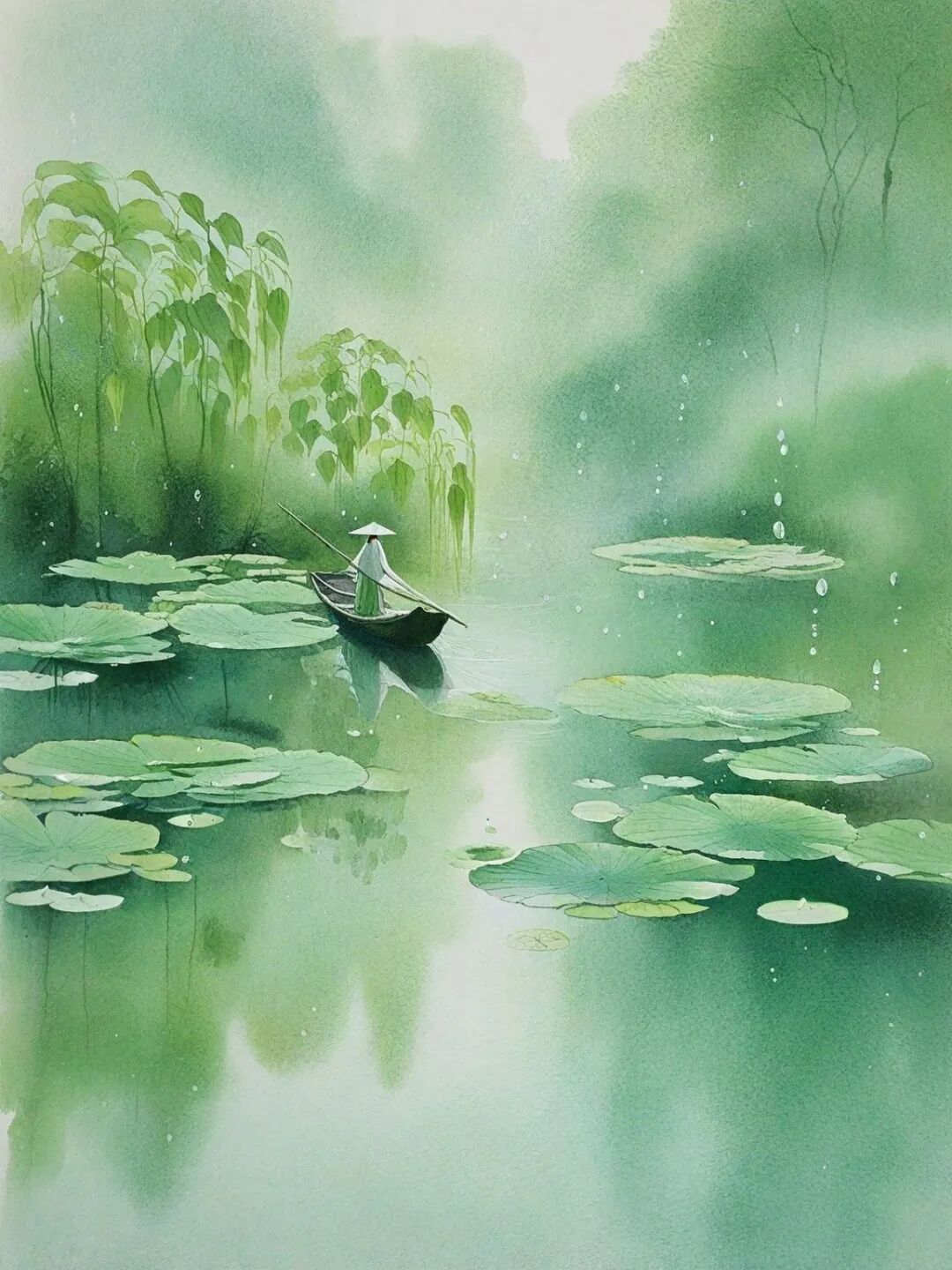 这首《兰溪棹歌》沿袭了他恬淡的风格,纯粹写景,诗中无人,却景中有情,情中有人。