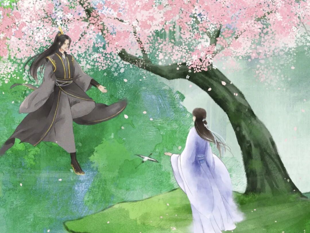 他说,这人间的事就留在人间吧,我愿陪你一起飞到天上的仙宫去,和仙人一起悠闲地扫落花。