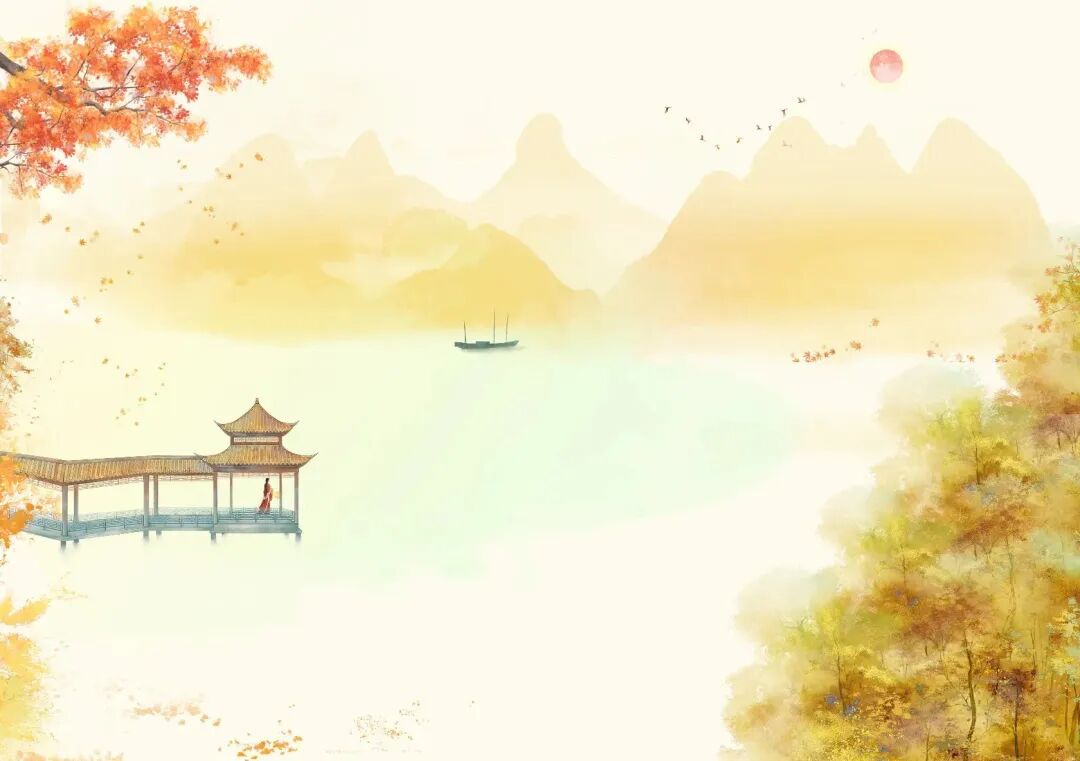 这是屈原笔下的洞庭秋色,叶落枫红,水静风凉,给人一种宁静清幽的感觉。