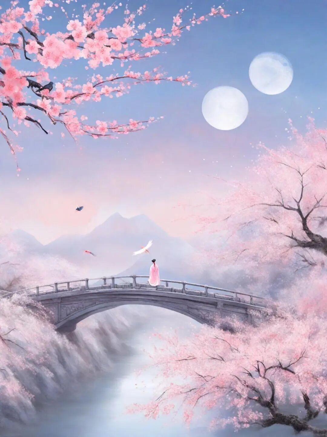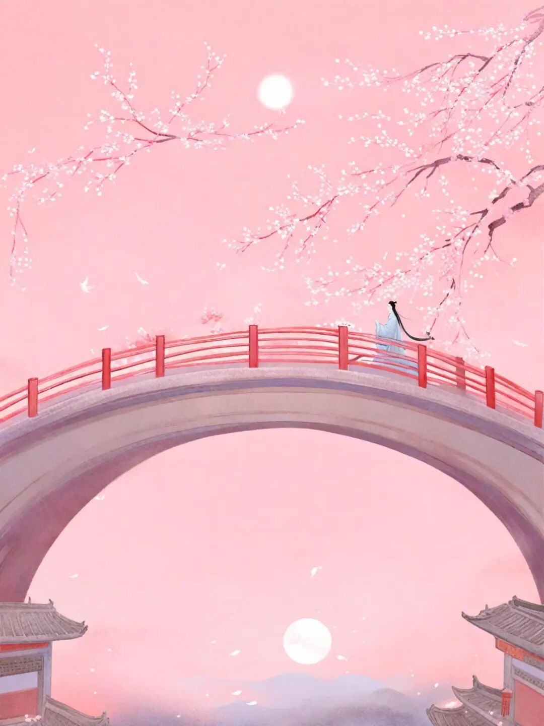 推开,地上铺着蜀地锦绣制成的地毯,抬眼,有丝织成的屏风遮蔽视线。曲曲折折的走廊上,有玉石装饰的台阶,雕花刻纹的栏杆上月亮正照射着光华,她与那男子掩着红漆木门相互遥望。