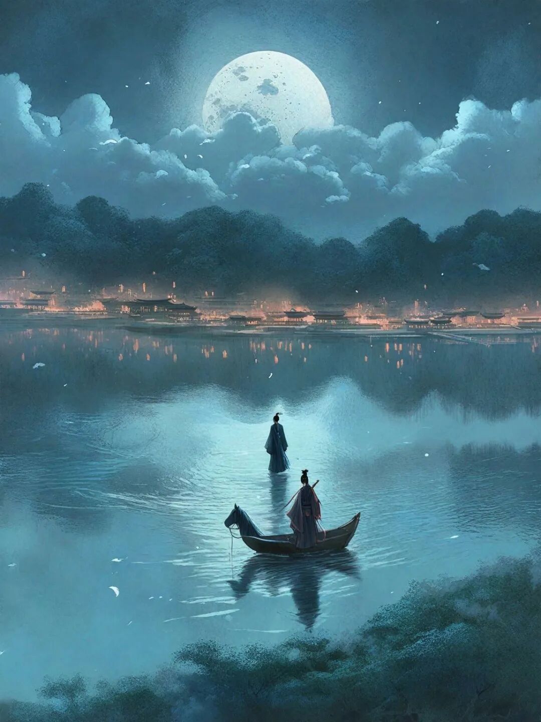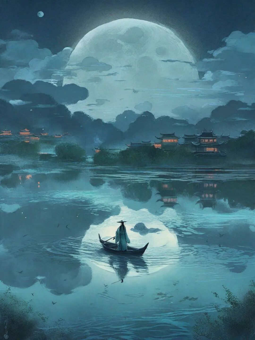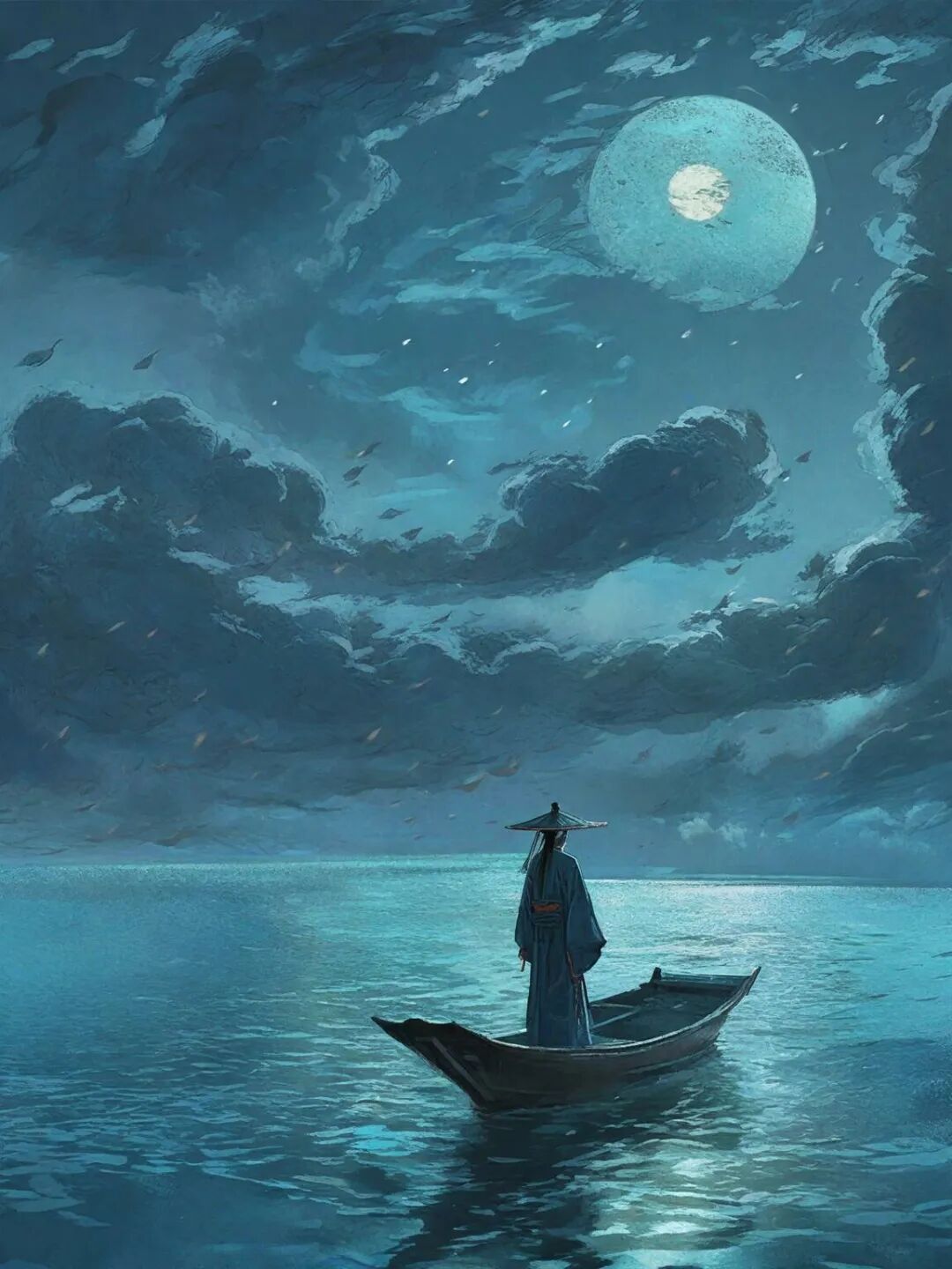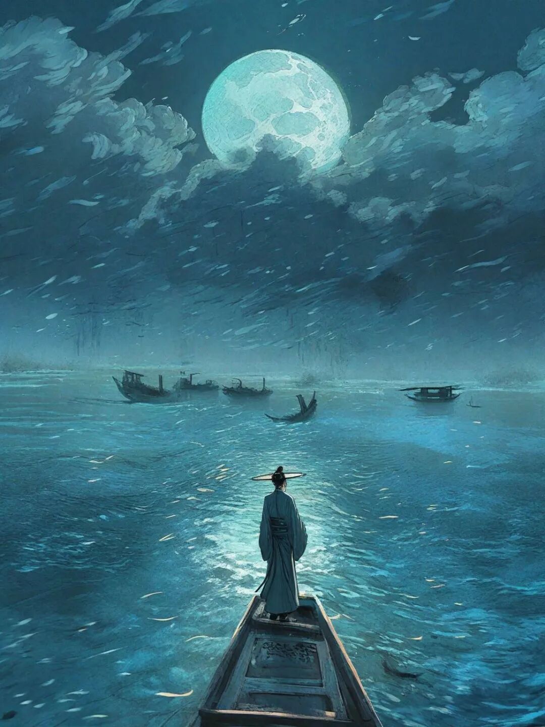他想,既然如此,何不趁着这夜深、风静、江波坦平,驾起小船从此消逝,泛游江河湖海寄托余生呢。