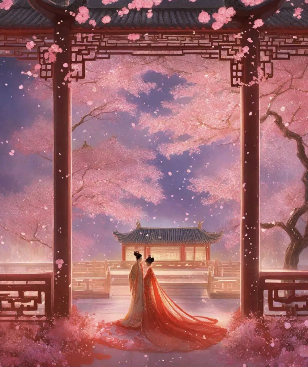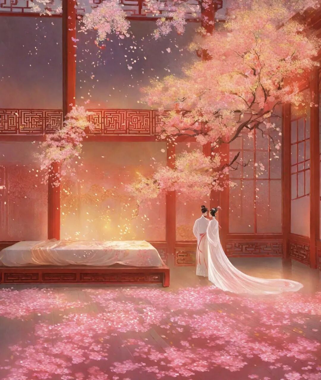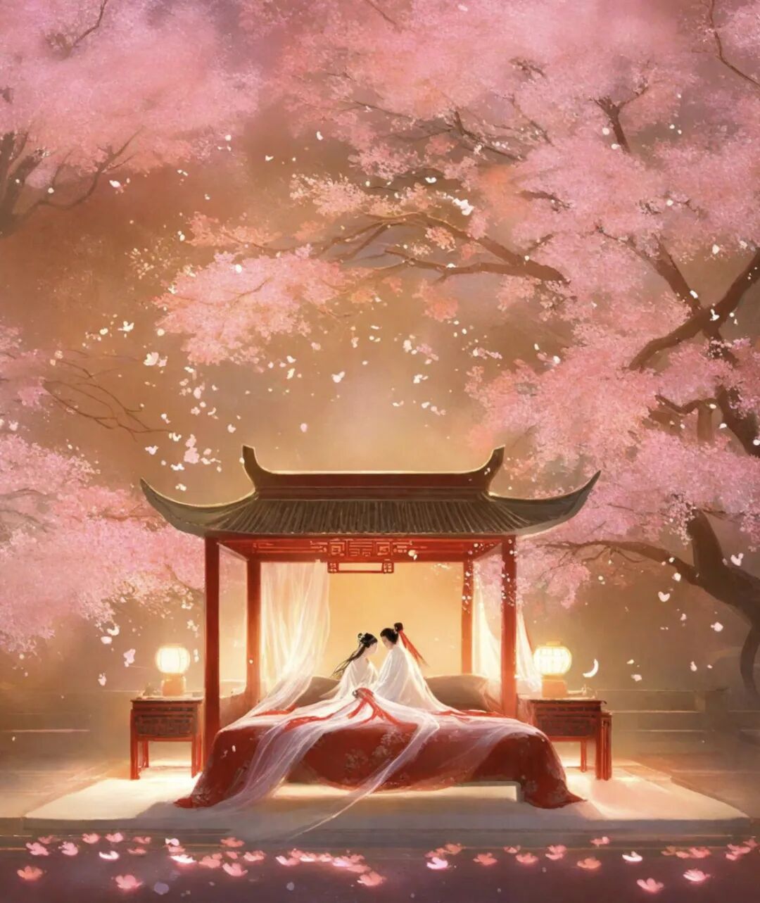 和前面的“珠帘绣幕蔼祥烟,合卺(jǐn)嘉盟缔百年”一样,这两句也最适合闹洞房的时候起哄用,氛围感满满。