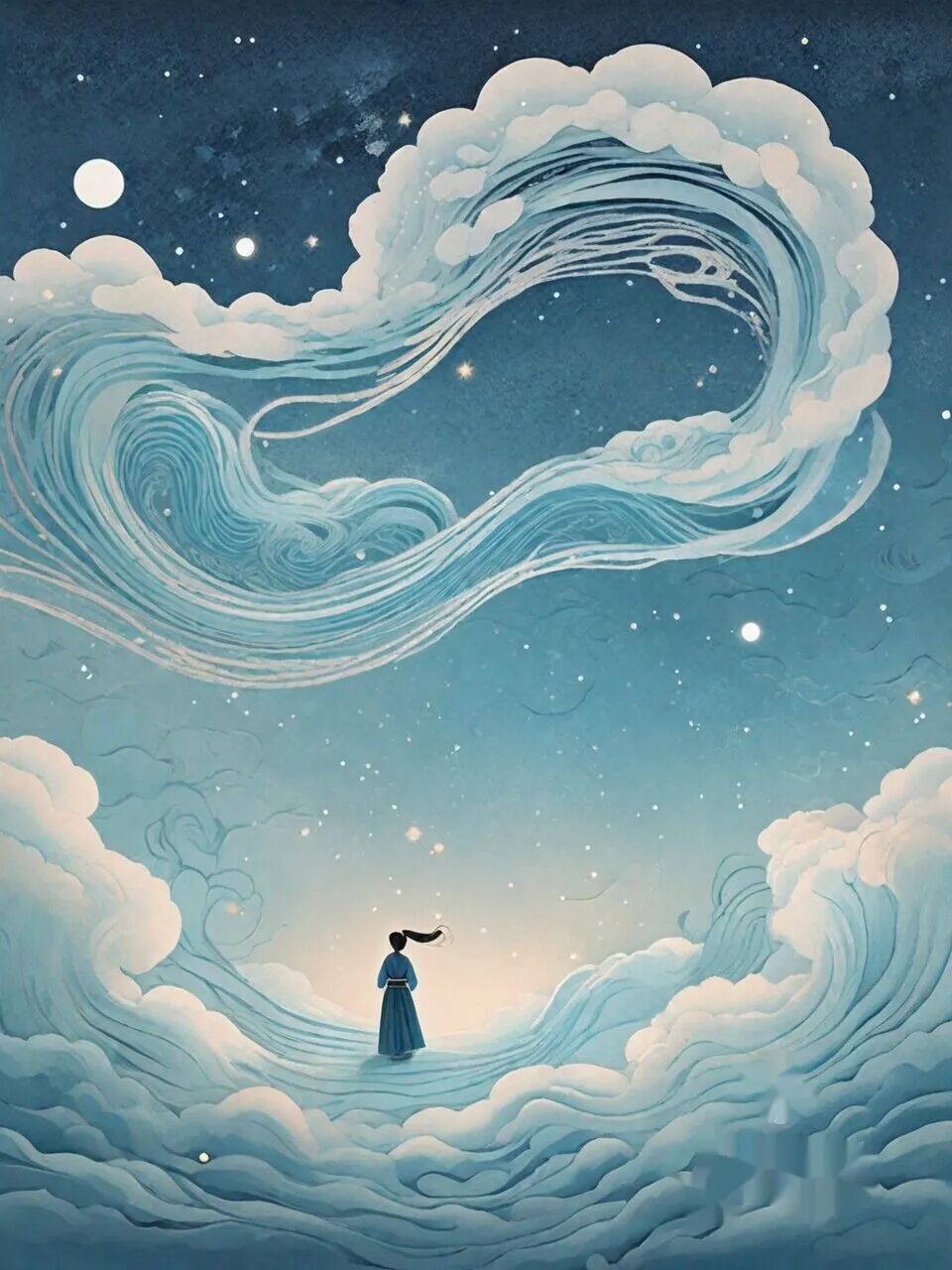 释义:那水中之月,可通向清空安宁的禅心。那山间白云,可寄托不受世情拘束的闲散心情。