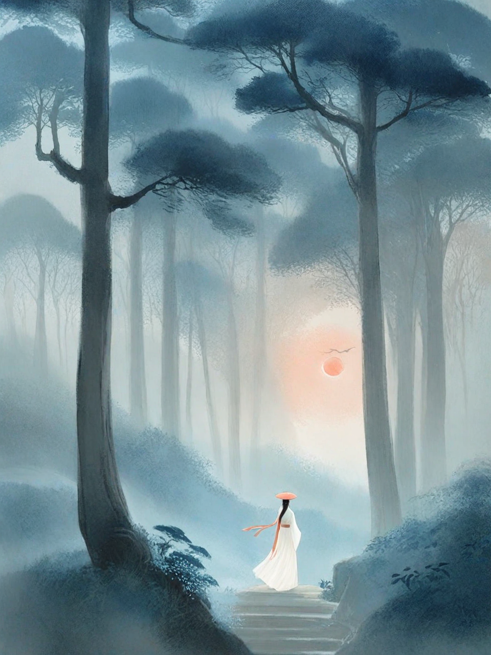 青瓦长忆旧时雨,朱伞深巷无故人。