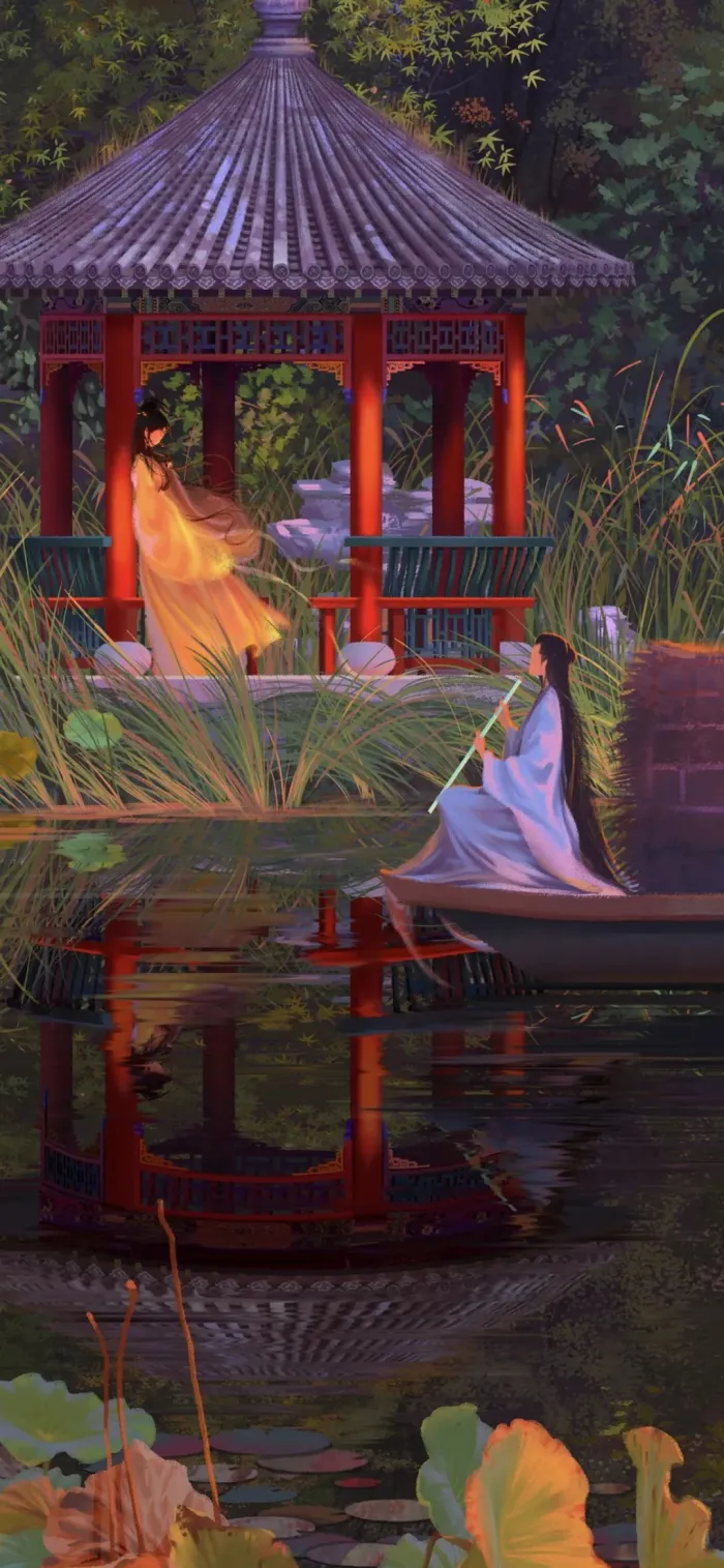说完,他转身登上客船,船家摇起风帆,青山隐隐,夕阳斜照,水路迢迢,婆娑荡漾。晚风吹来,悠悠远去,他于江上挥手,她于堤岸遥望,相思满天。