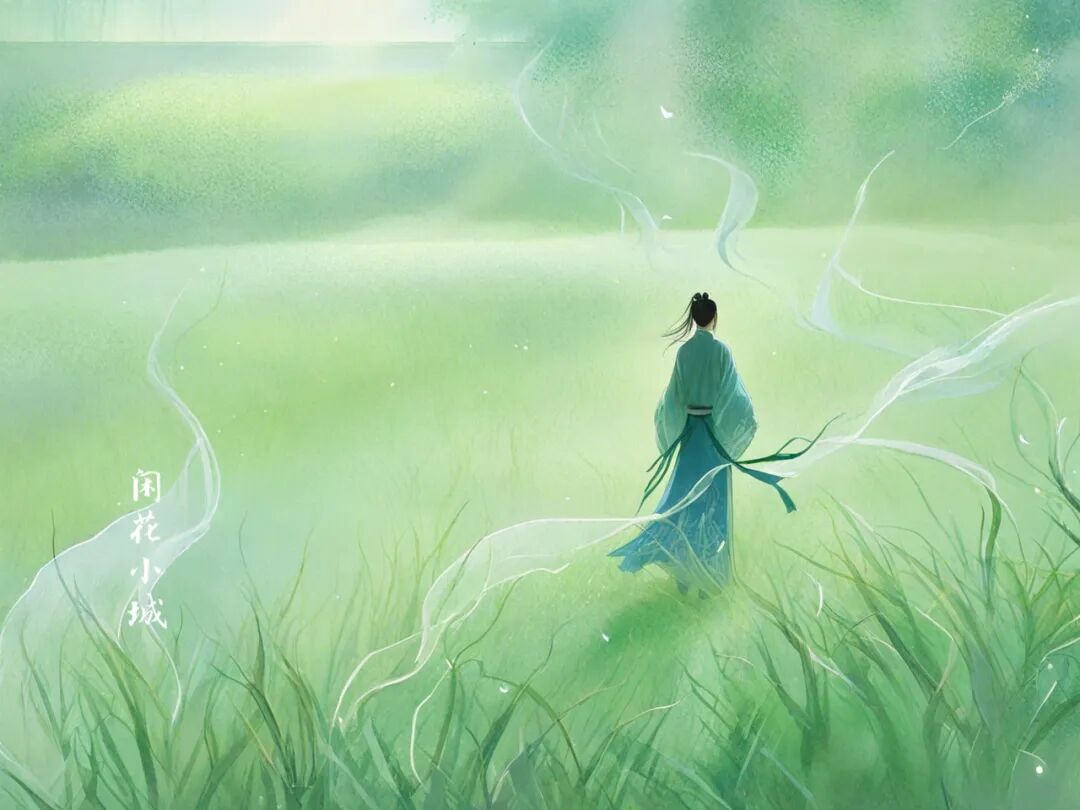 意思是,青草像被谁铺开在地上一样,方圆六七里都是草地。晚风中隐约传来牧童断断续续悠扬的笛声。