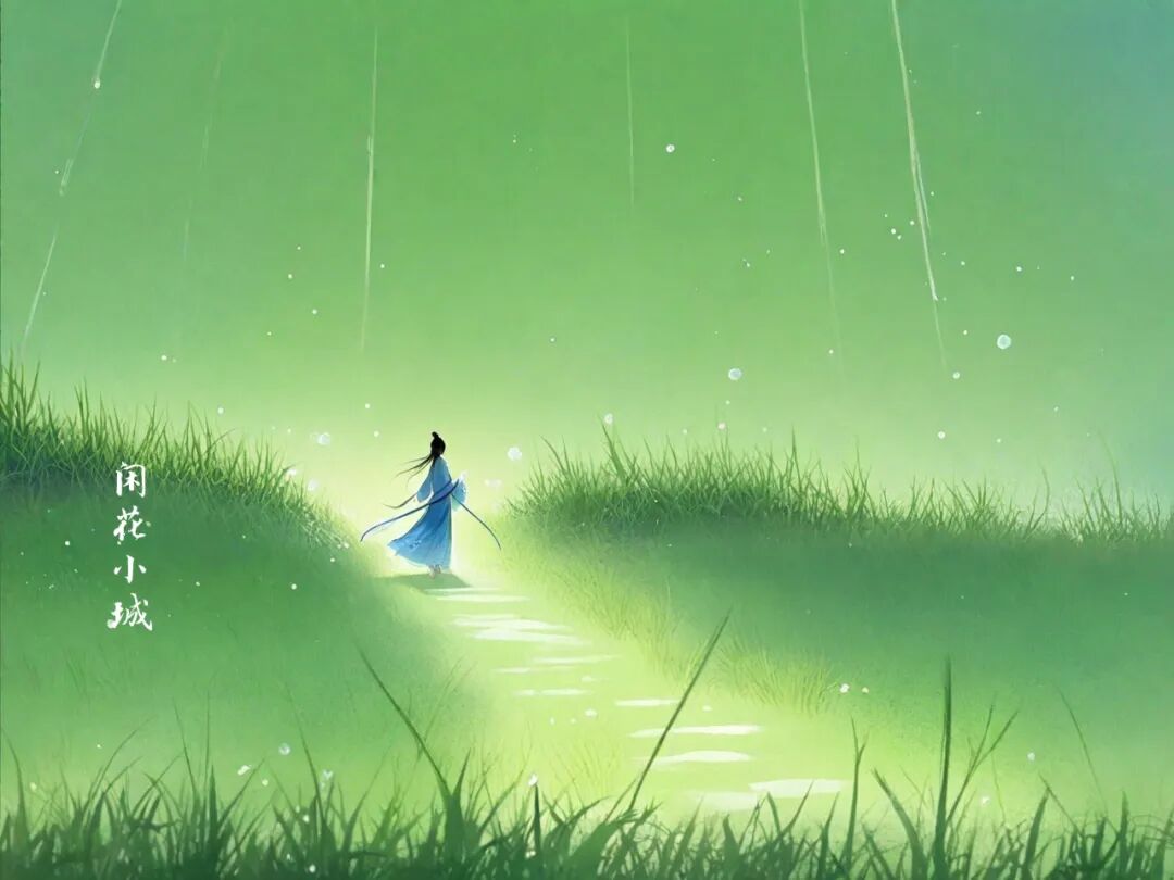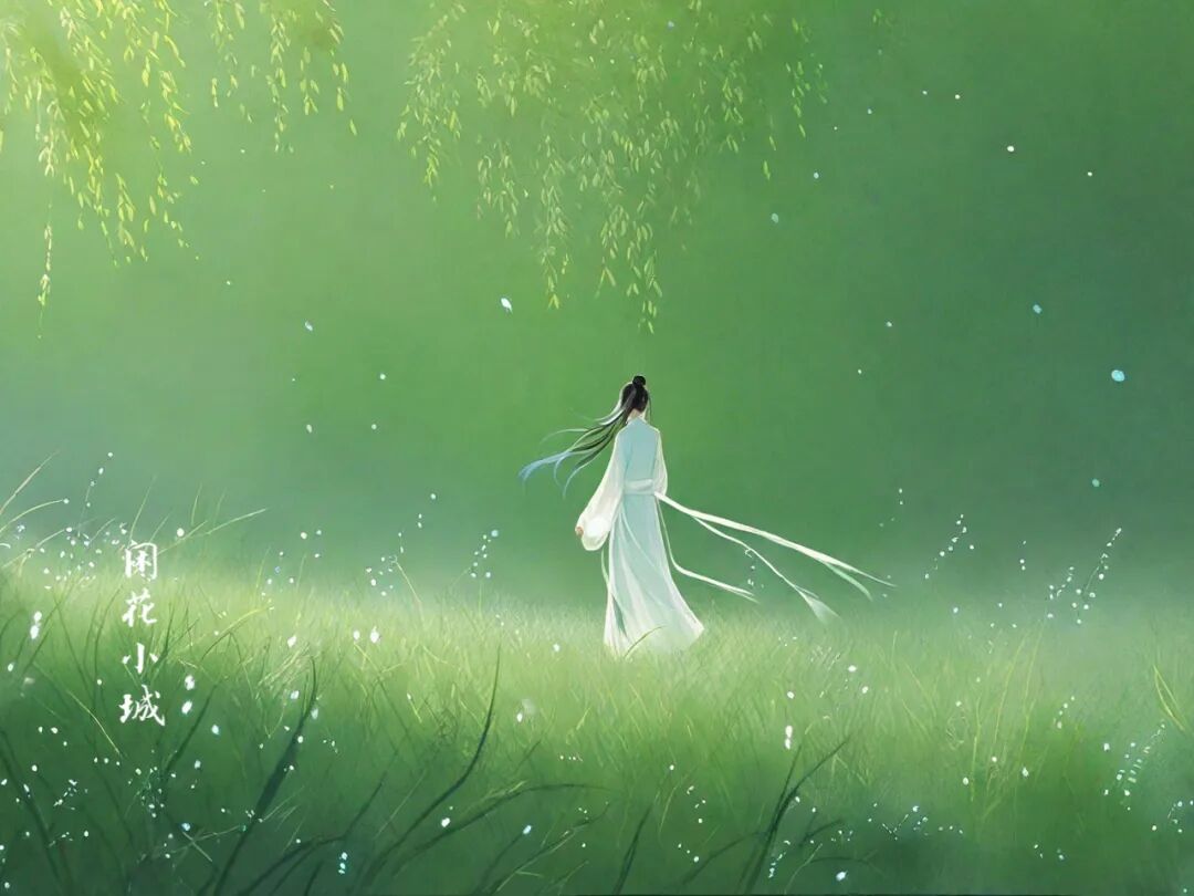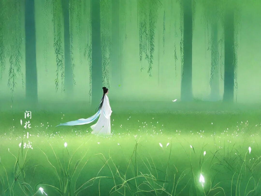 只一个“绿”和“白”轻灵一点,瞬间将初夏时节的江南风光跃然纸上,而后的“子规声”、“雨如烟”,更将江南独有的那份旖旎浪漫融入其中,使其情景交融,浑然天成。