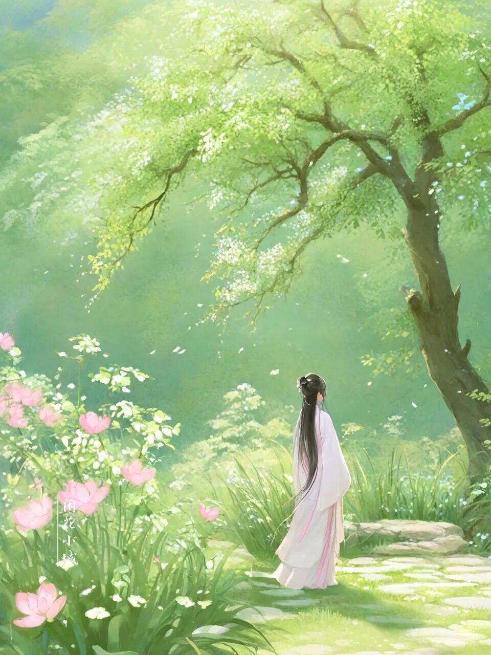诗中有桃花仙人,他潇洒不羁,疯疯癫癫,却活得清醒自在。