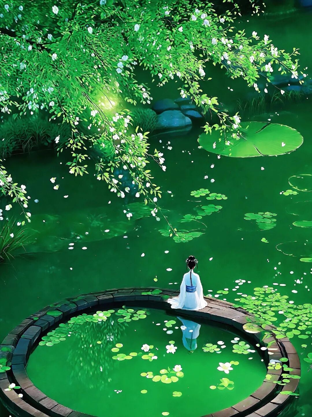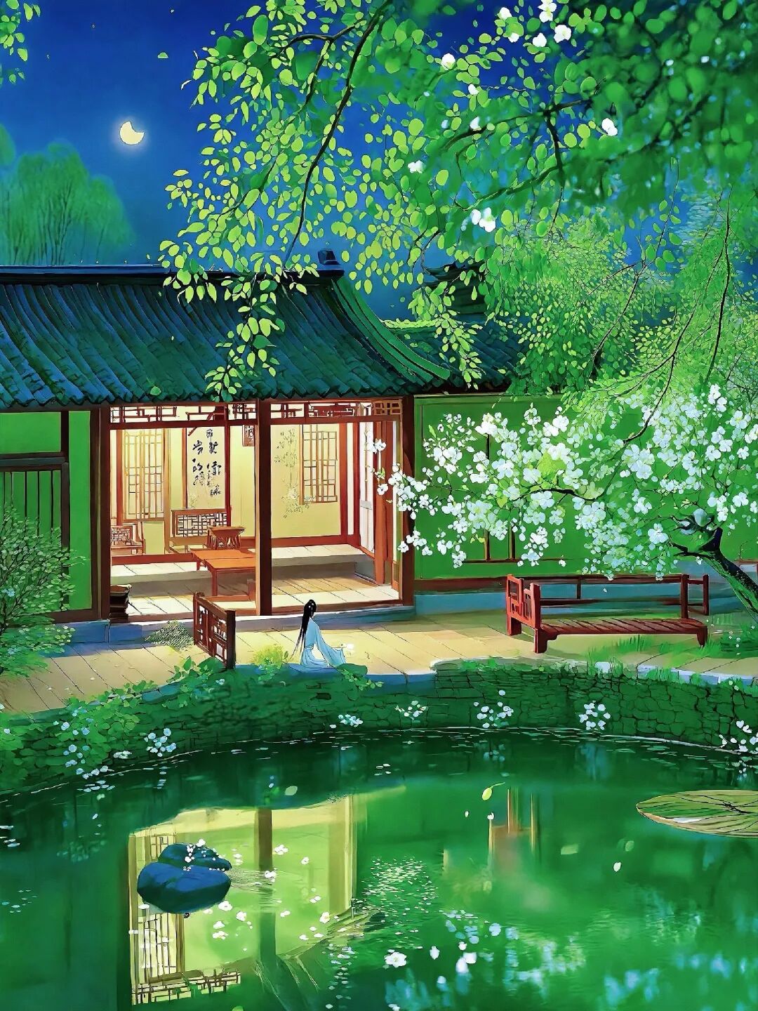 他在赏月听笛,顺便偷瞄了一眼池中盛开的莲花,总之幽香散溢,沁人心脾。