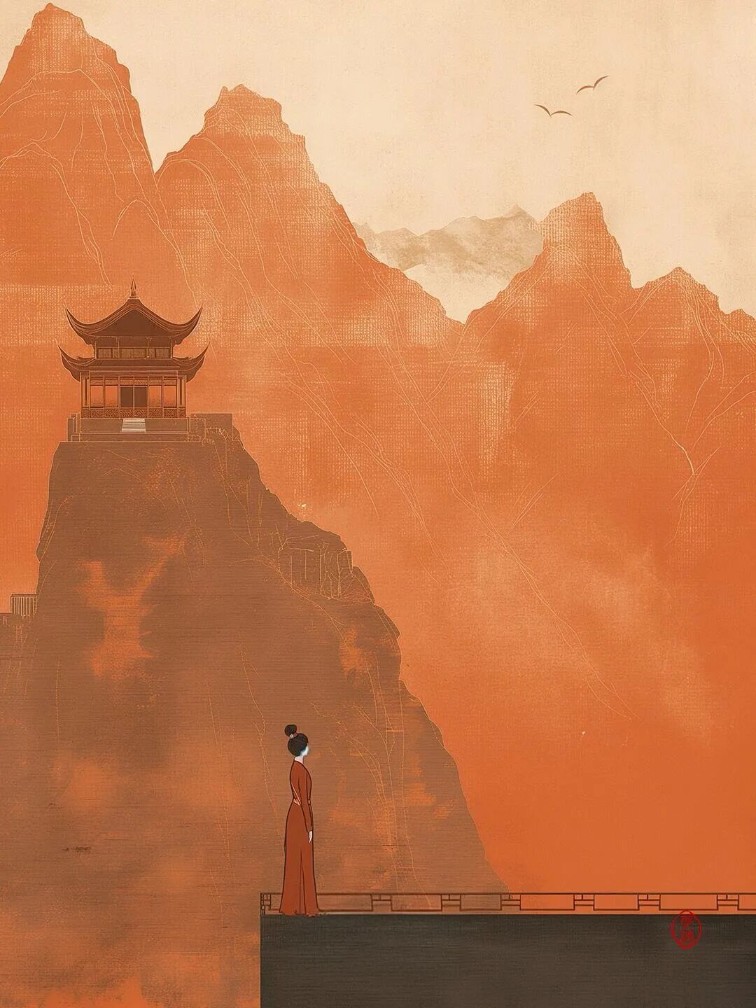 他说,一重又一重,重重叠叠的山啊。山远天高,烟云水气又冷又寒,可我的思念像火焰般的枫叶那样热烈。