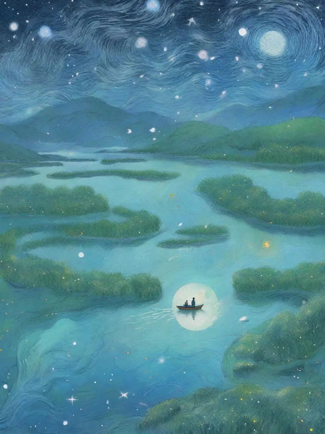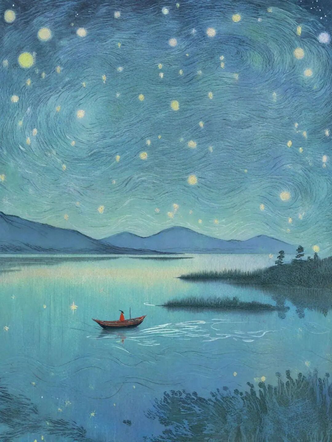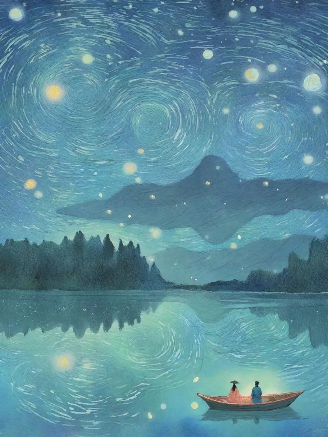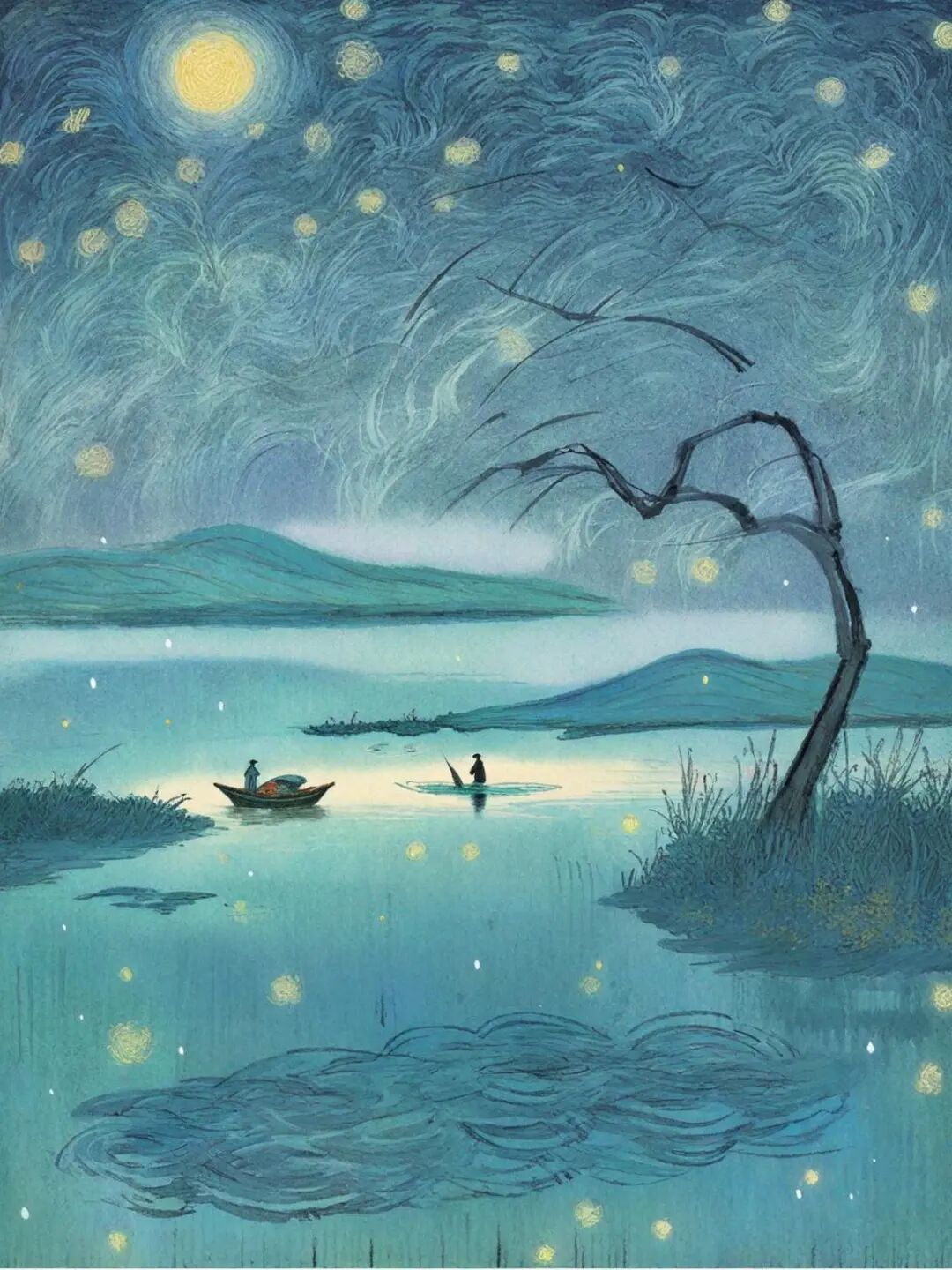 荷花有情,青灯知意,彼此惺惺相惜,堪称一绝。只不过那情不是爱情,是他的思乡之情。一叶一浪,一灯一桨都藏着他对故乡的眷恋与不舍。