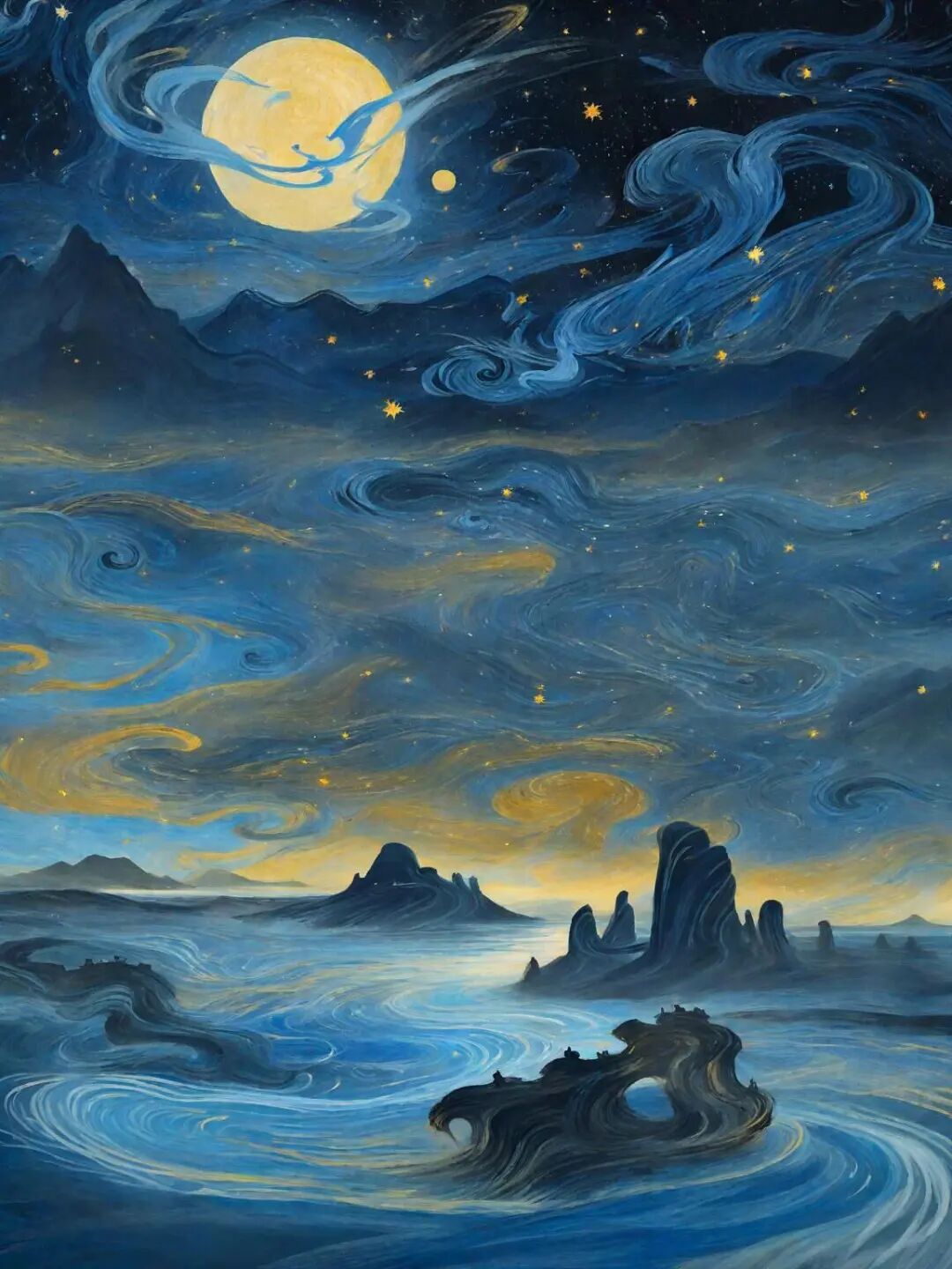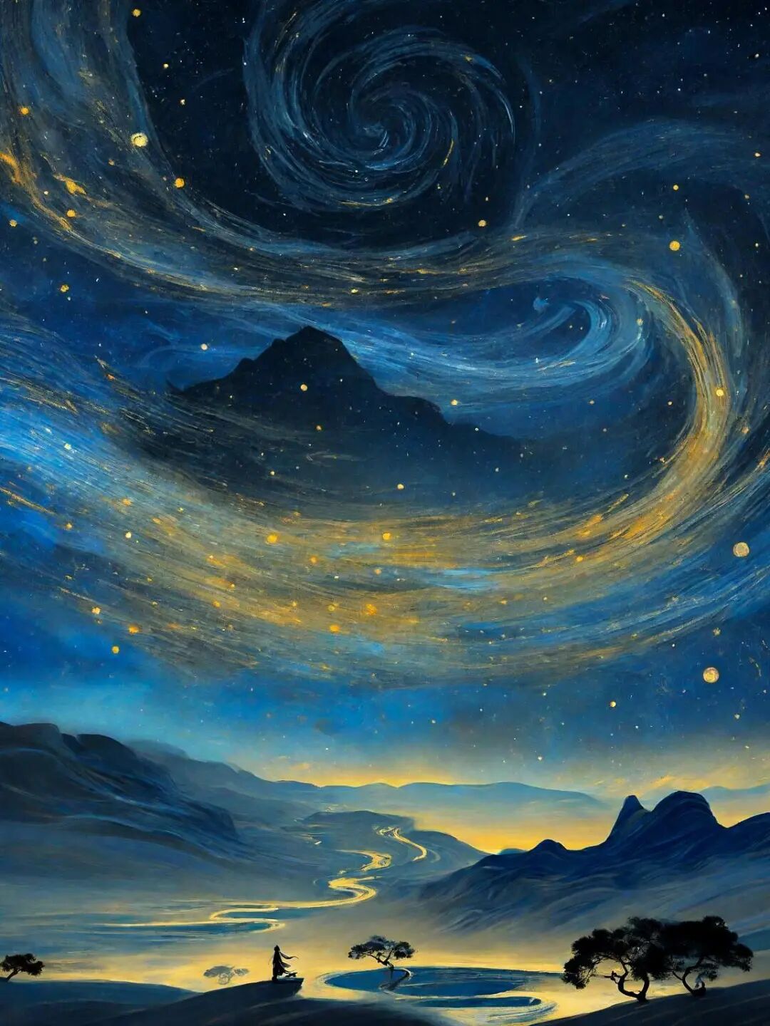释义:我问大海什么时候会老去,清风问我什么时候可以得悠闲