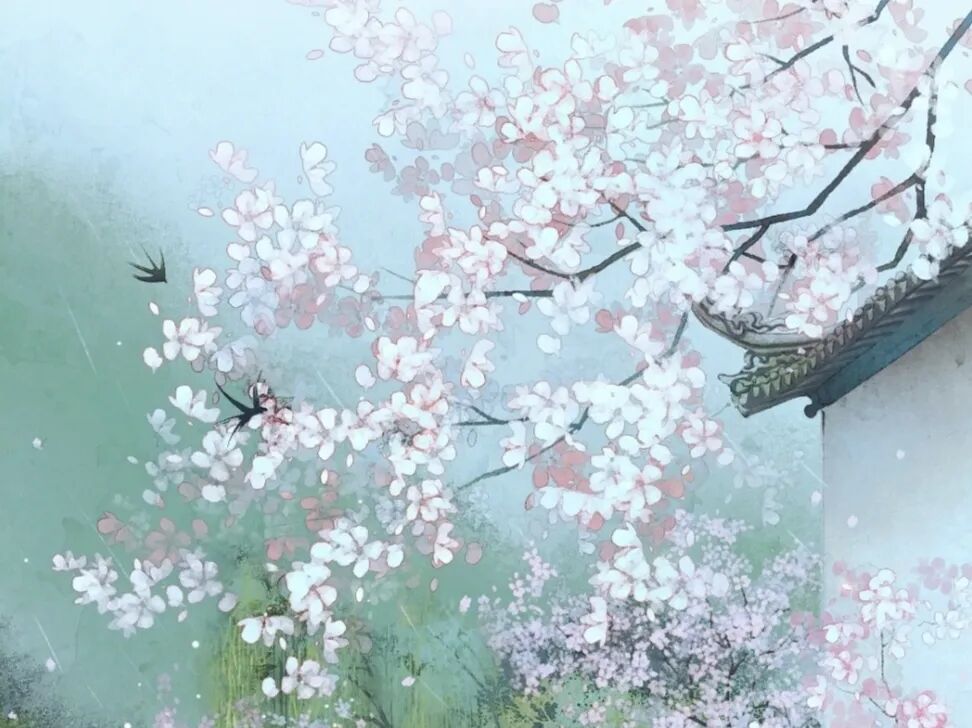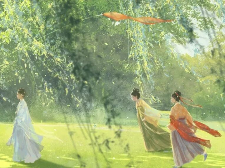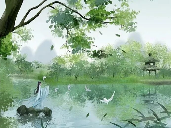 若说韦庄的《思帝乡》在山水如画,人流如织的热闹都市,那么秦观的《好事近》、《行香子》则是在云淡天高,风清柳柔的宁静乡村,让我们体会到春天不同的美。