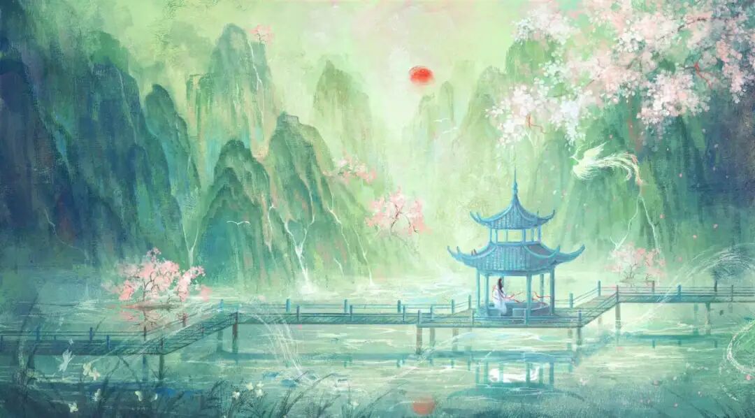 一个夏天,梅雨刚过,蝉鸣阵阵,窗外小榭处,廊下池塘被微风带起涟漪,鱼儿在水下嬉戏,惹得那新荷摇动。周邦彦闲来无事,便支起薄薄沙帐,轻摇羽扇,躺在竹席上纳凉。
