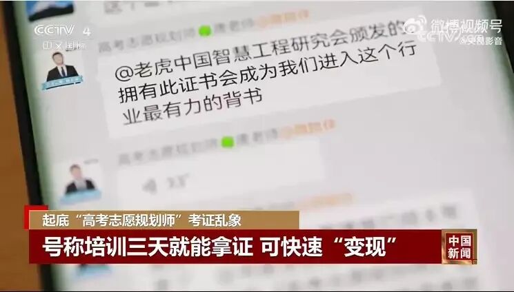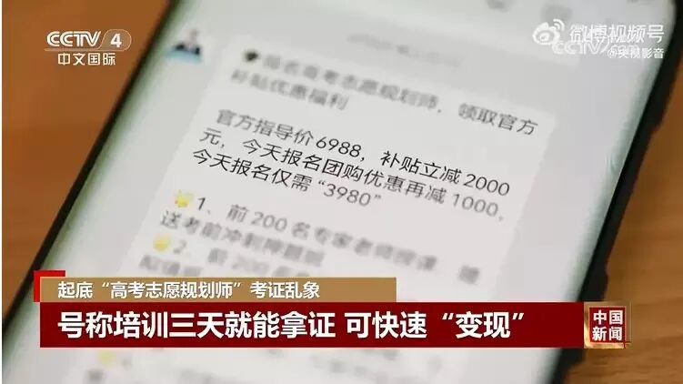 近日,记者在网络上发现,不少机构打出广告说,要想成为“高考志愿规划师”,可以通过考试持证上岗,还宣称“考证低门槛、低难度,适合做副业赚钱”等。