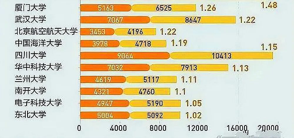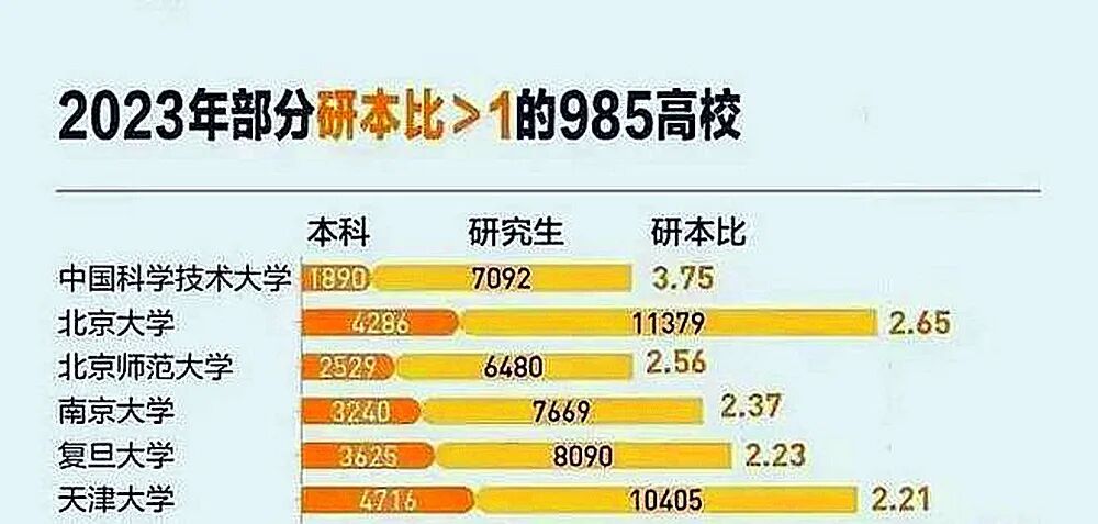 从2023年部分985高校的研本比中,我们可以感受到考研的热度之高。那些最高学府的研究生扩招比例明显,而其中占比最高的并不是我们熟知的北大,反而是中国科学技术大学。