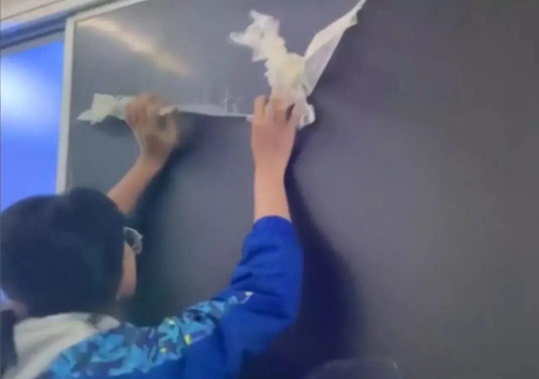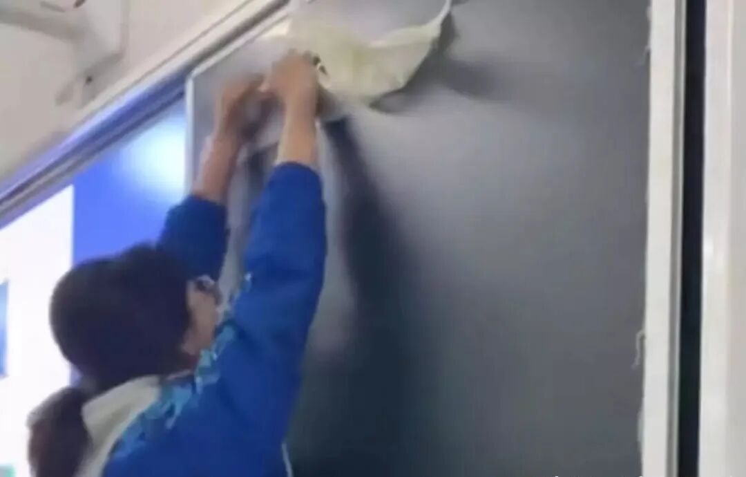 最后在老师的应允下,学生小心翼翼地教黑板上面的塑料膜给撕了下来,顿时整个黑板给人一种焕然一新的感觉。就好像是一个从来没有用过的新黑板一样,对此老师非常无奈,用了这么多年,有时候写字还总打滑,就是没有发现哪里不对劲的地方。