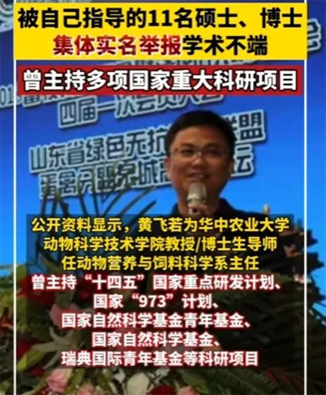 被举报的黄教授,是华中农业大学的博士生导师,该校动物营养与科学饲养系的系主任,多次获得湖北省杰出青年等荣誉称号,不过40岁,事业上取得如此成绩,可谓春风得意。