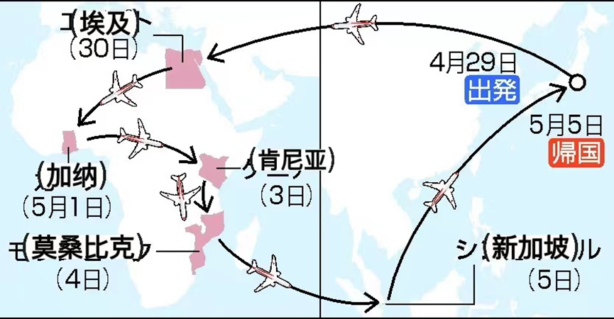 岸田首相将从4月29日起历访埃及、加纳、肯尼亚和莫桑比克等非洲四国,在归途访问新加坡后于5日回国。这是岸田于2021年10月就任首相以来首次访问非洲。