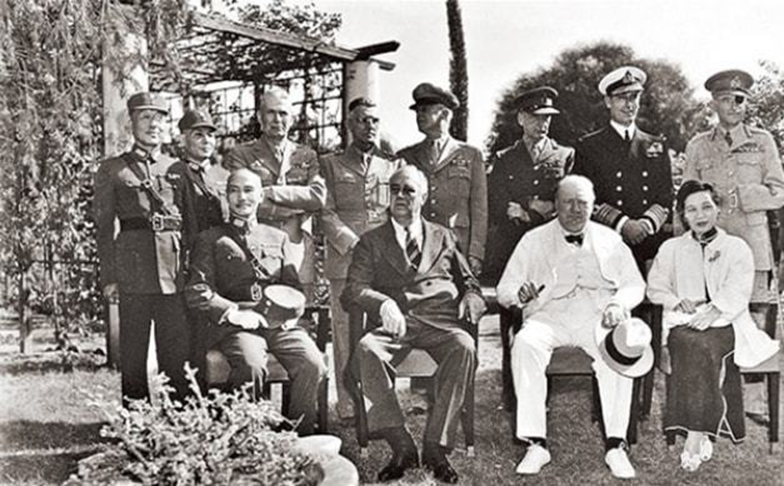 (前排左起:蒋介石、罗斯福、丘吉尔,开罗会议,1943.11)