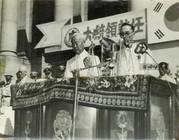(李承晚[前左]当选大韩民国总统)