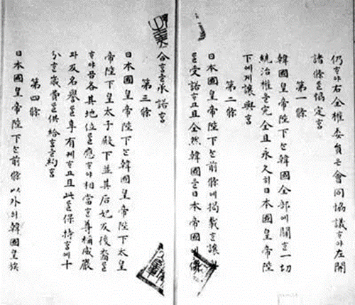 (《日韩合并条约》国汉文(韩文和汉文混写)文本,另外还有日文文本,)