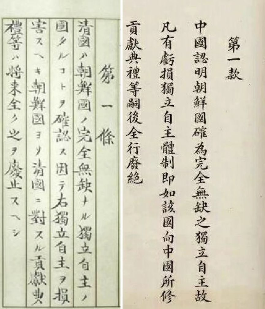 (《马关条约》第一款中、日文版本)